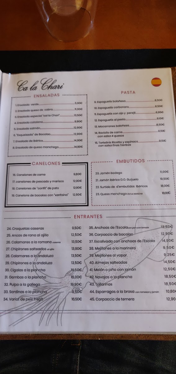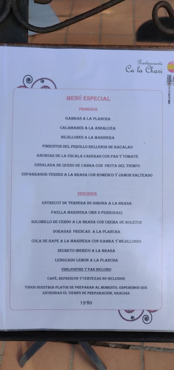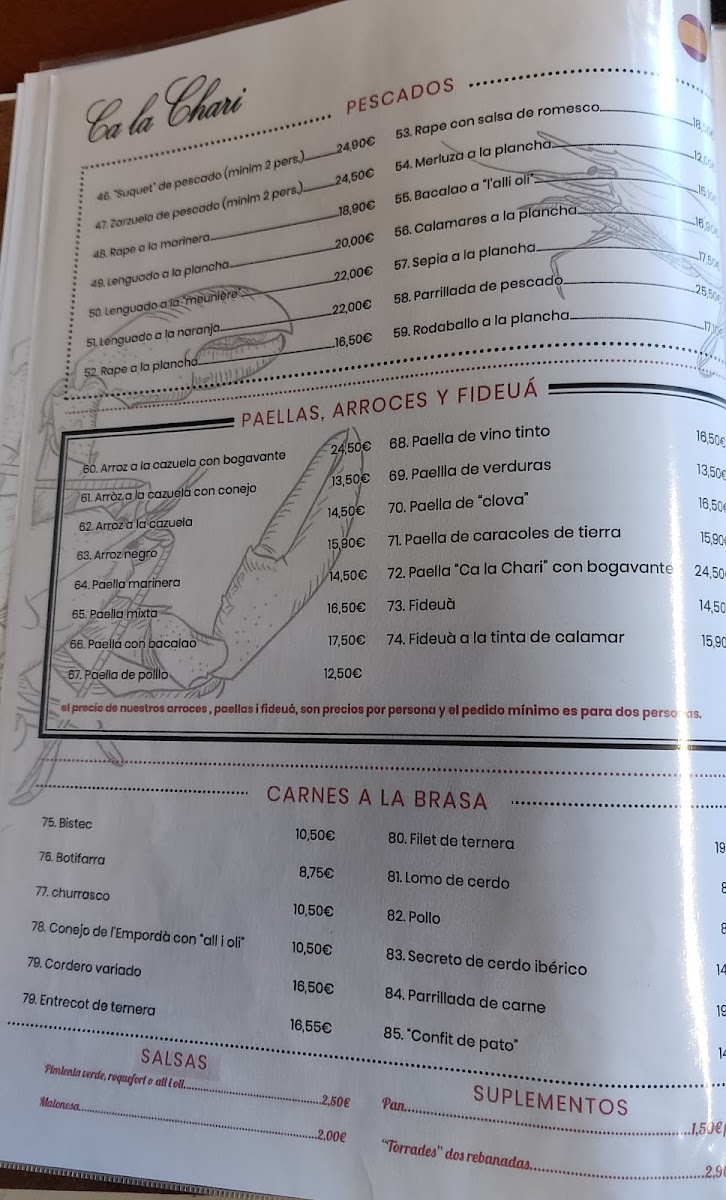 Nestled in the serene coastal haven of L'Escala, Girona, Restaurant Ca La Chari is your go-to destination for delightful home-cooked meals at an unbeatable price. For just 10€, patrons enjoy a generous spread that includes a refreshing salad, a choice of starter, a hearty main course, dessert, wine, water, and artisan bread accompanied by aioli.